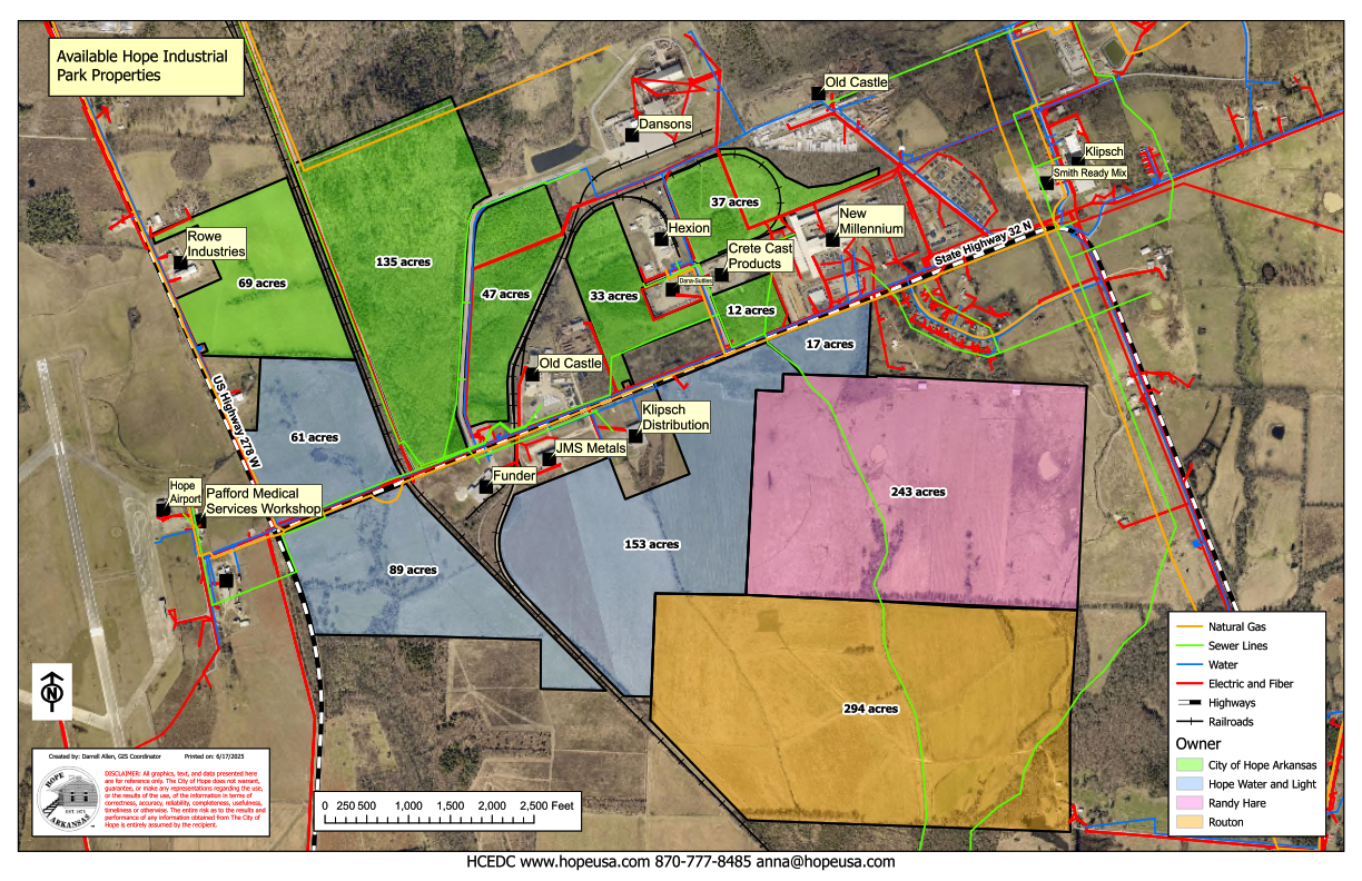 The site is owned by the City of Hope and Hope Water & Light.