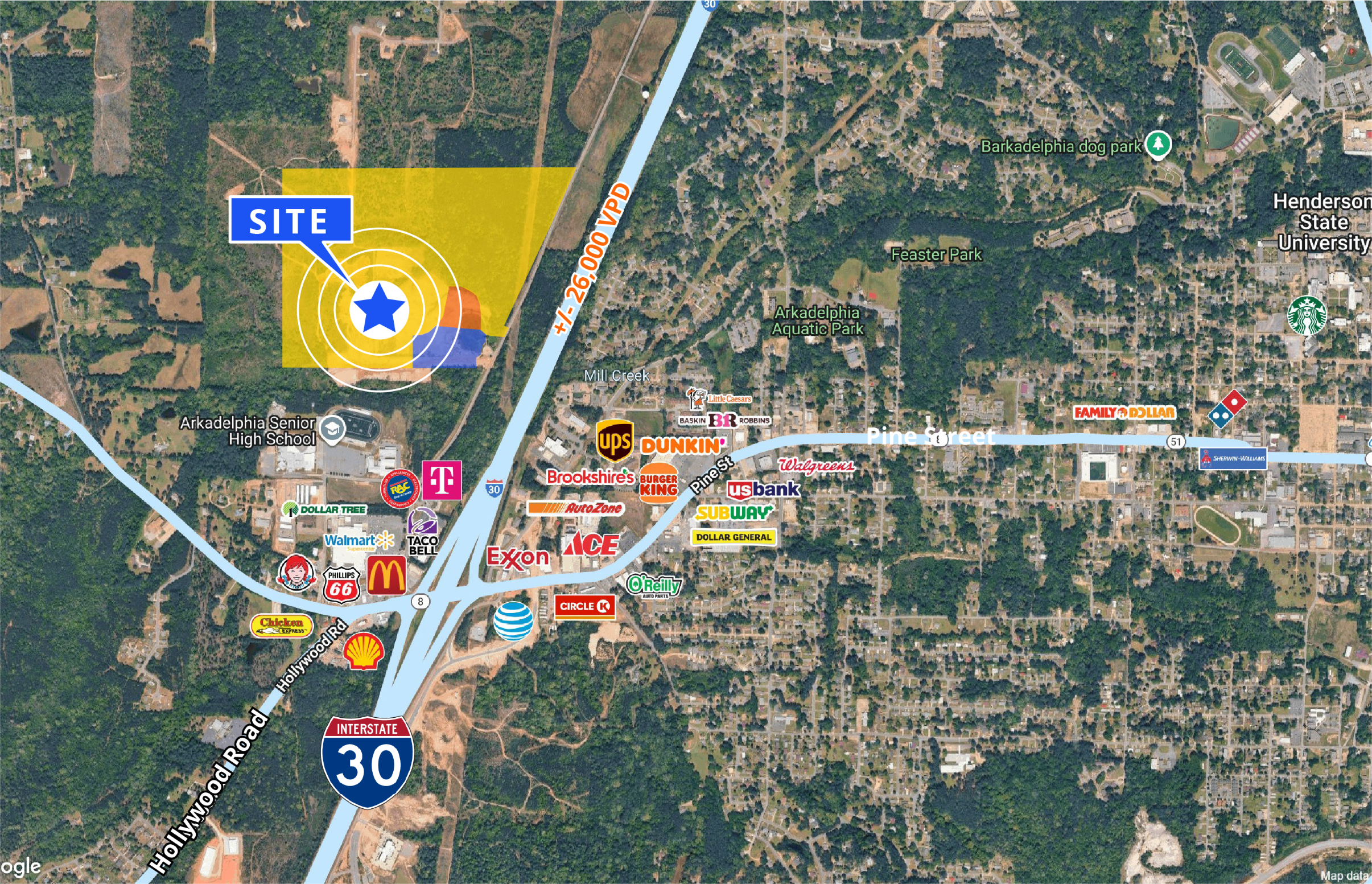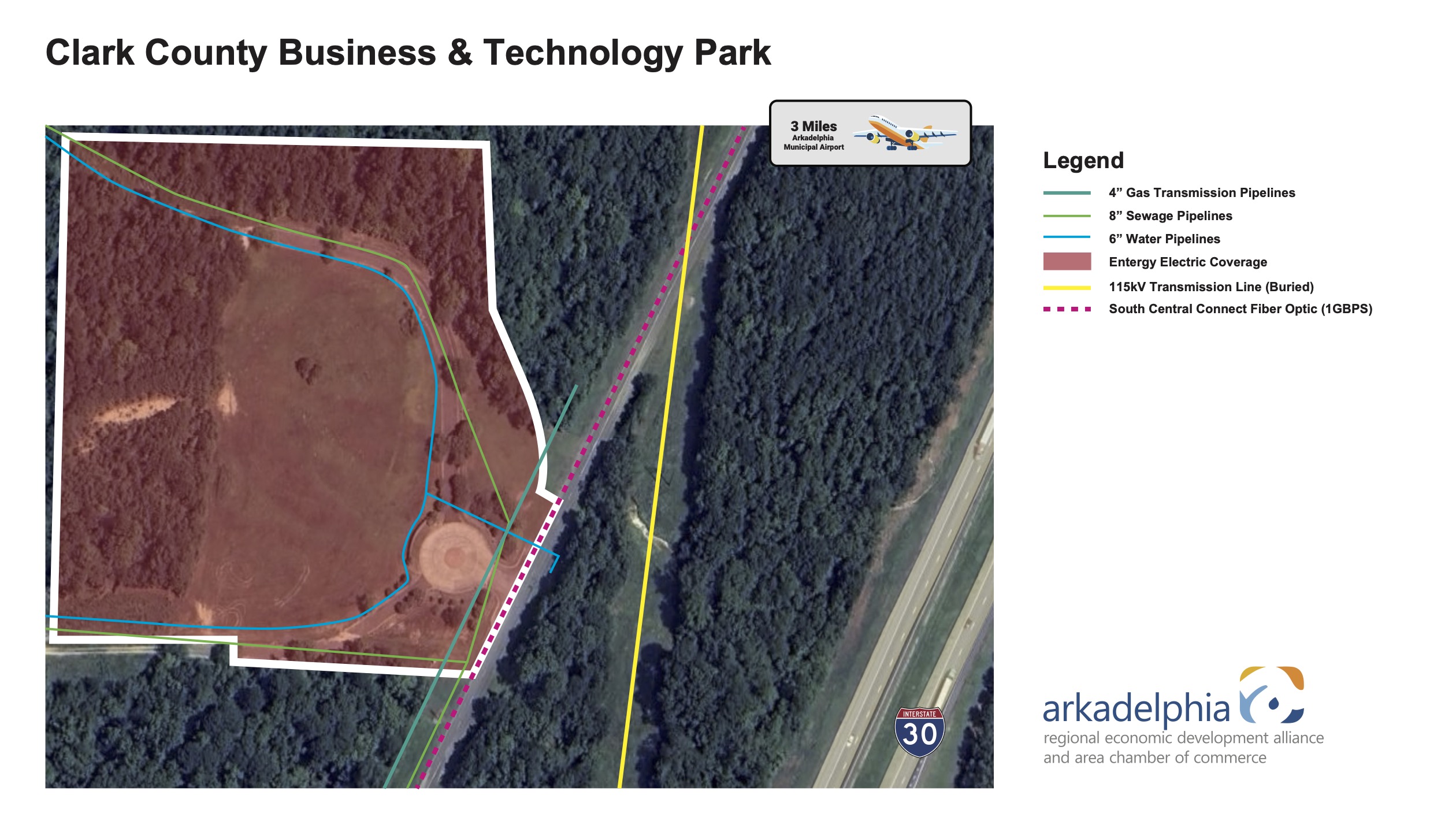 80 MilesThe Clark County Business & Technology Park has a total of 40 acres available and is located at 325 W.P. Malone Drive, just 0.25 miles from an I-30 exit. The site runs parallel to I-30.
