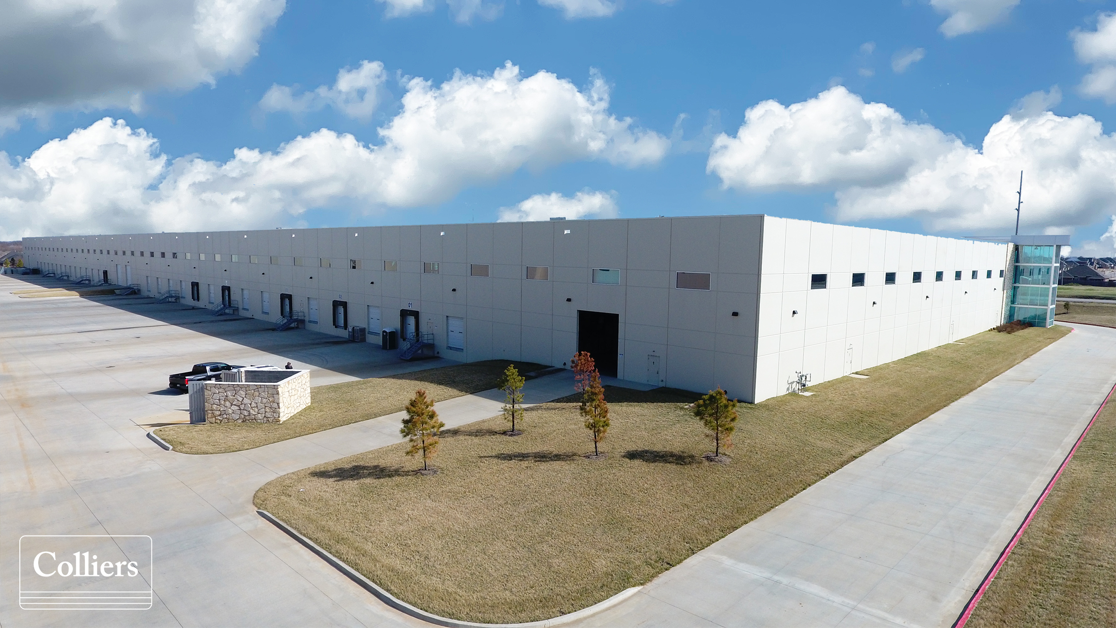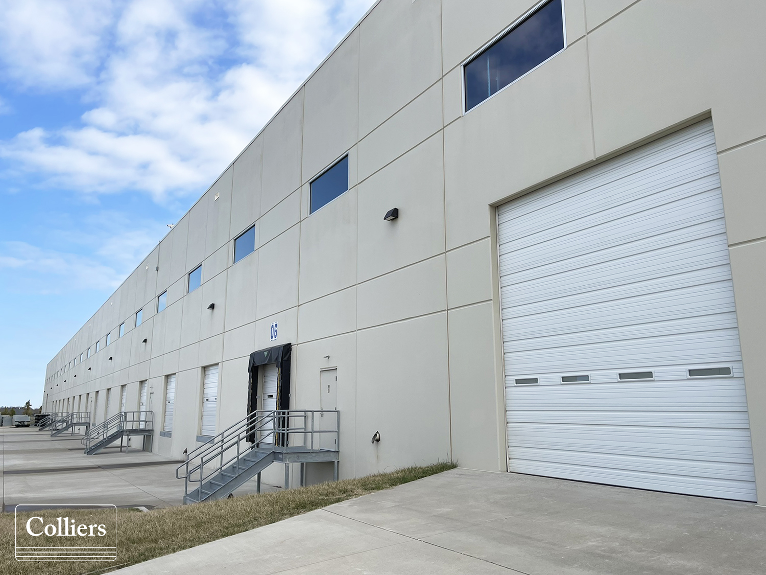 with drive-ins and tilt wall construction with a modern facade.